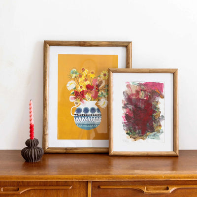The Odin Rattan Photo Frame comes in two sizes, to fit an A3 or A4 print. Both frames come with a mount, but the print is not included. There are brass clips at the back to secure the print and brass hooks for hanging.
