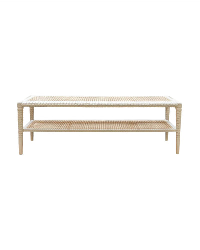 Inspired by nature, with a hand carved leaf motif and natural cane interior, the Pavilion Wooden Ottoman has been thoughtfully designed with slim proportions to combine functionality with beauty.