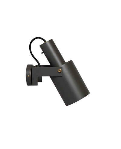 The 2 different sized shades that makes the Volume 2 Wall Lamp Medium, are made from iron pipes which are lacquered in black, white, umbra grey, slate grey or soil grey. The details are made from solid brass and the wall lamp can be rotated in various angels. This lamp is crafted in Sweden – manufactured by hand, designed and developed with the greatest attention to precision in detail and material.