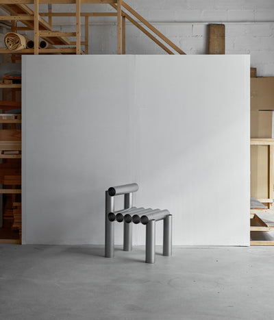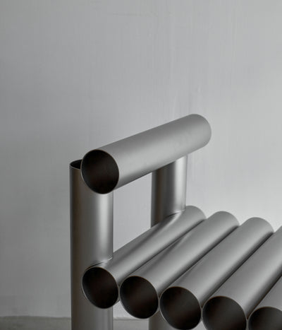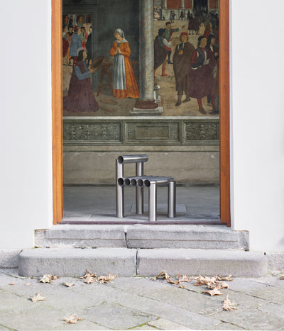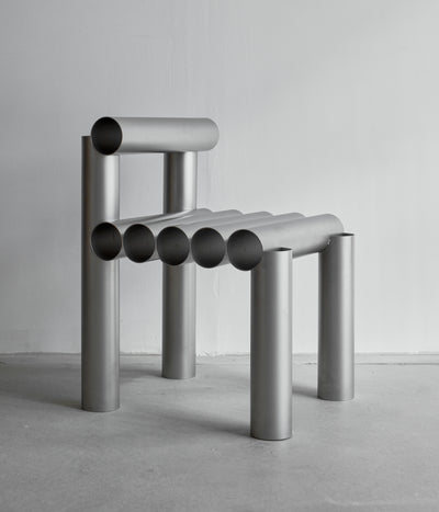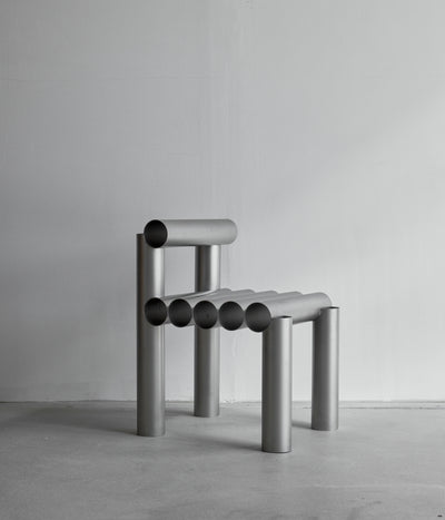 “La Santa María” chair is a modern and sturdy piece of furniture that combines both industrial and minimalist design elements. Its construction primarily utilizes steel pipes, known for their durability and strength.