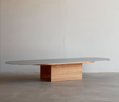 The side table "La Super Short" is a design piece that combines elegance and functionality with a sophisticated mix of materials. Its oak wood structure meets a 3 mm thick stainless steel sheet, creating a harmonious contrast that stands out for its modernity and precision in interior design.