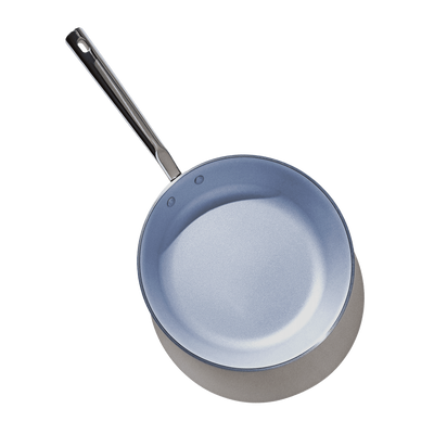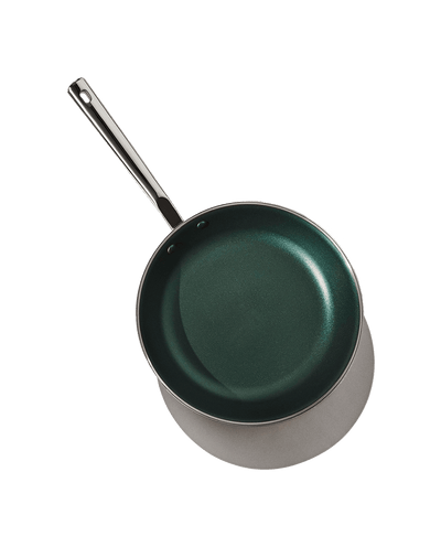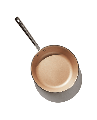 Copper is the best of the best, and it’s at the core of these pans. Known for its unrivaled mastery of heat, copper heats up quickly and evenly, but is also notoriously expensive and difficult to care for—until now. This has has all the pros, none of the cons, and has a beautiful non-stick coating, too. Good news —works on induction cook tops as well.
