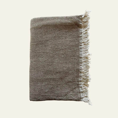 Lightweight linen and cotton blanket with side fringes. This very soft blanket, available in two different colours, will delicately decorate your home. Made by hand, every difference is synonymous with authenticity. Dimensions: 135 x 185 cm Material: 60% linen, 40% cotton Made in Turkey