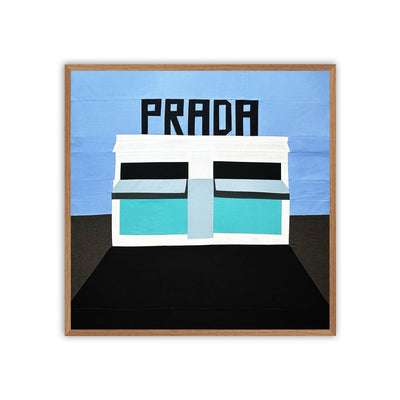 This one’s for the desert dreamers. Inspired by the iconic Prada Marfa installation in Texas, this original fabric quilted artwork captures the surreal mix of high fashion and wide open space. It was handmade in the Motel Bodega Amsterdam studio using carefully chosen remnants of fabric, each one stitched together with care to give new purpose to leftover materials.