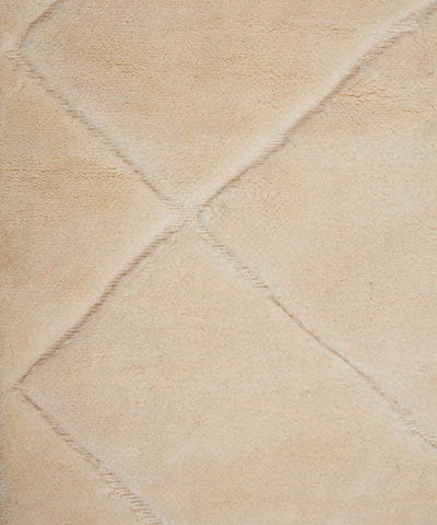 Knotted rug made entirely by hand from 100% Moroccan Atlas wool, densely knotted and meticulously washed to offer a uniquely soft luxurious feel. These rugs have a comfortable warm profile often described as "walking on a cloud". Balance is subtlety.