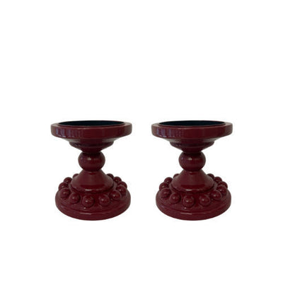 Pair of Deep Red Bobbin Candle Holders (Small)