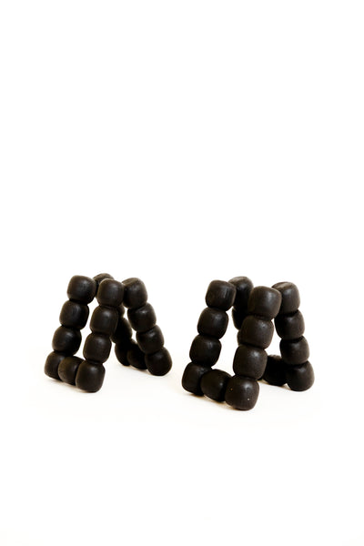 The HOF Riviera Napkin Holder, designed in collaboration between Daniel Orozco Studio and U.S.-based House of Form for their tableware collection, features a unique triangular design composed of solid wooden spheres with a natural finish. Measuring 10 cm by 7.5 cm with a height of 10 cm, this elegant piece is crafted from responsibly sourced wood from the Yucatán region. Handcrafted by skilled Mexican artisans, it embodies a proud tradition of craftsmanship and sustainable design.