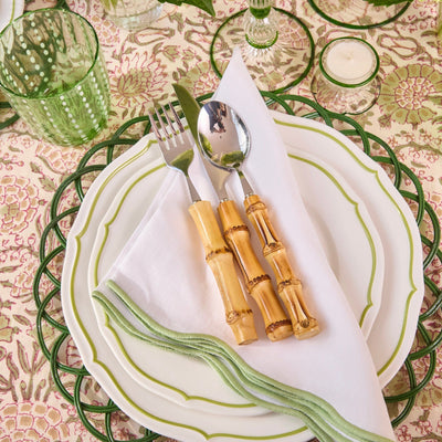 A generous 51 x 51 cm, these are beautiful quality linen napkins that are available in a choice of a blue or green embroidered edge and designed to accessorize with all our tablecloths.  Alternatively, choose an elegant beige linen with a plain white border.