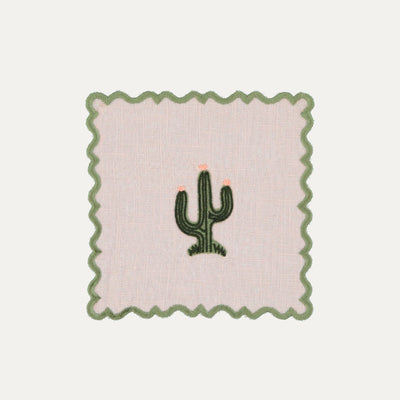 Wavy Cocktail Napkin in Baby Pink with Cactus Green