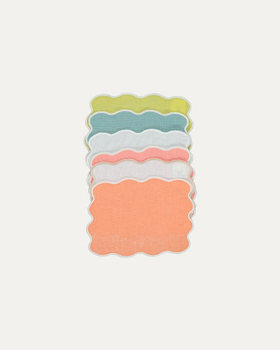 Elegant napkin made from a linen and cotton blend, featuring a delicate scalloped edge that adds a sophisticated touch to your table.