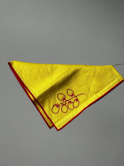 Linen Embroidered Napkins | 'Vine Tomatoes'
