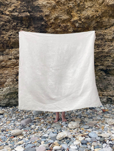 Way before terry cloth was invented, the original towel was a large linen cloth like this one. Linen cloth is naturally anti-microbial, anti-static, durable and fast drying. This means they stay smelling fresher for longer. They are also particularly great for the outdoors as the long fibres make it very strong, in fact even stronger when wet. You will also find sand won't stick as much as it does to a cotton terry towel making it the perfect beach mat. Read even more about Linen here.