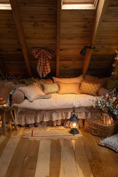 This linen fabric is a very sustainable choice for bedding. As the flax is grown in the fertile soils of Northern Europe, it requires very little water and virtually no fertilizers or pesticides. Flax as a crop retains a huge amount of C02 (3,7 tonnes per hectare) and every part of the plant is used for making linen as well as linseed oil, food for livestock and soap. Linen is a very absorbent fabric requiring very little dye for colouring and is completely biodegradable.