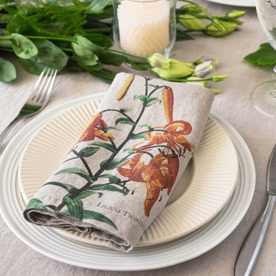 A traditional country garden inspired Garden Flowers linen napkin set is an amazing way to decorate your dining table. Every napkins of the set depict different flower which create a woderfull table setting. Guest will be excited to have their personal serviette. And if you'll invite your friends for a week-end, be tranquile, they'll not mix their napkins anymore as hey know exactly which is theirs. Be sure, they will absolutely love it! Our napkins are made from high-quality washed 100% European linen. You will enjoy pleasant fabric weight, generous size, mitred corners, hems of a nice proportion. Linen is a sustainable 100% plant-based fabric. Its cultivation and production are water-efficient, not polluting and residue-free, which is beneficial for nature and us! Linen is naturally hypoallergenic and safe for people having allergies or sensitive skin.