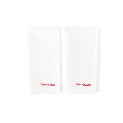 Embroidered Linen Napkins (Set of 2) – “Bon Appétit” & “Dinner Time” Edition