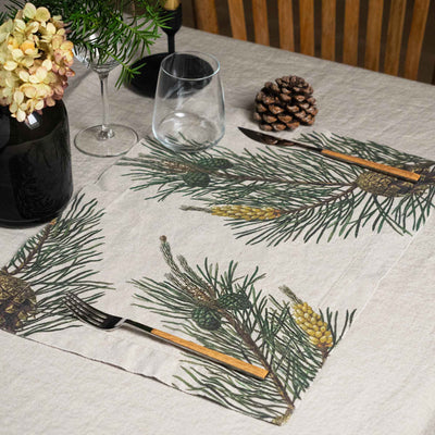 Green. Calm. Ornamental. PINE placemats will bring forest serenity to your table. These nature-inspired table mats will help to change the seasonal atmosphere of your table decor. Combine with the Conifer Trees linen napkins for a more impactful table setting! Made from 100% natural washed linen, Linoroom placemats are distinguished by their elegant slightly wrinkled texture and soft touch. Linen is naturally antibacterial, therefore it is perfect for the hygiene of table textiles. In addition, linen is considered hypoallergenic and safe for people having allergies.