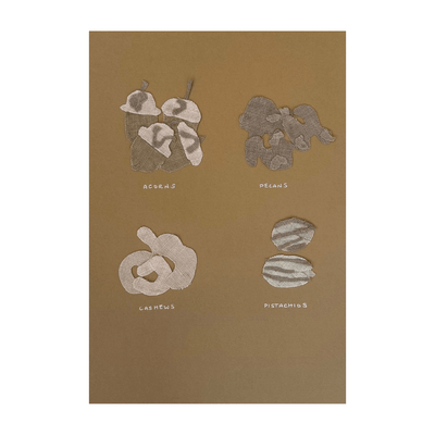 A celebration of nature's quiet wonders, Mixed Nuts is a one-of-a-kind collage artwork that highlights a variety of nuts forms and textures.