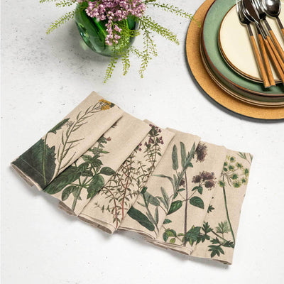 The greenery of Aromatic Herbs linen napkins will bring a sense of satifying peace to your table. Every napkins of the set depict different herb which makes your table setting vibrant and leaves guests excited to have their personal serviette! Match with a linen tablecloth for a more impactful and festive feel! Our napkins are made from high-quality washed 100% European linen. You will enjoy pleasant fabric weight, generous size, mitred corners, hems of a nice proportion. Linen is a sustainable 100% plant-based fabric. Its cultivation and production are water-efficient, not polluting and residue-free, which is beneficial for nature and us! Linen is naturally hypoallergenic and safe for people having allergies or sensitive skin.