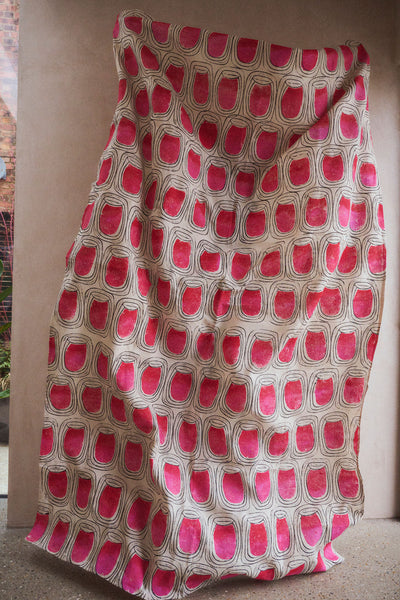 100% European Linen. Solvent free water base textile printing ink. Wash at 30 degrees. Do not tumble dry. Linen is strong and durable, easy to wash and naturally dries quickly. 185 gsm