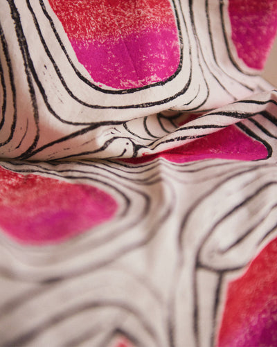 Long haul flights, sunsets, hot towels, little bags of peanuts, movies. A childhood spent traveling overseas. Airplane windows fabric. Hand printed in London. Block printed in Nic’s London studio. Perfect for curtains and soft furnishing.