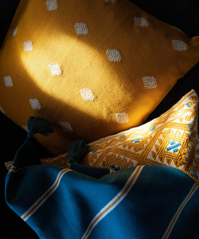 Woven by hand for over 35 hours, this luxurious, zero waste cushion is crafted by indigenous women artisans who are dedicated to keeping their ancient craft and culture alive.