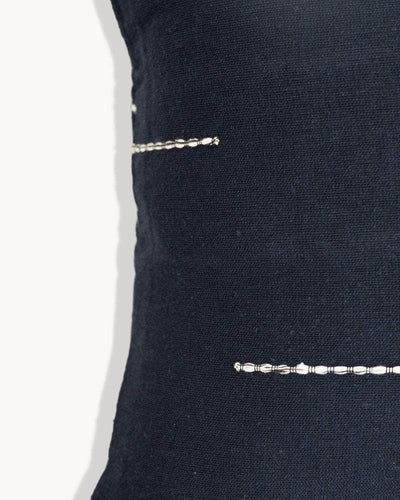 A handwoven accent pillow which finishes off any cosy and comforting space. With its deep navy base colour and contrasting textured stitch detail, a signature technique famous to the Oaxaca region of Mexico, this soft cotton cushion is meticulously finished with four hand tied tassels which use up threads which would otherwise have gone to waist.