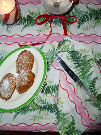 Introducing the Eden Stripe print. Your favourite Eden print has had a festive make over! Ferns are intertwined with red and pink stripes to make your table pop, just add some red velvet bows to your champagne glasses and some coloured candles.