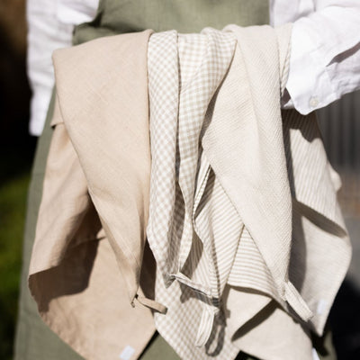Elevate your kitchen or bath with this thoughtfully curated set of 4 linen towels, each with its own unique charm. Handcrafted from 100% OEKO-TEX certified linen, this set includes one in classic stripes, one in gingham, one in a timeless solid, and one in soft waffle weave. Together, they bring variety in texture, function, and aesthetic — perfect for everyday use or as a beautiful gift.