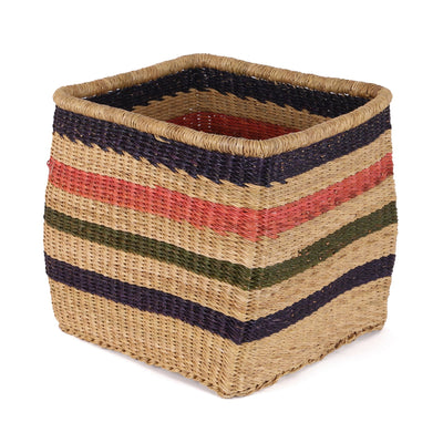 Our smart ABEIKU square storage baskets sport orange, khaki and navy against a natural undyed grass base. These stylish and robust storage baskets are hand woven in Northern Ghana and look superb all over the home.
