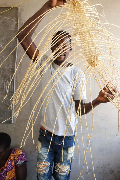 Each woven storage basket takes up to three days to complete, and is made from an indigenous Ghanaian grass called veta vera. The process is time-consuming: before weaving can begin the grass must be collected and split by hand, then hand-rolled and dyed. Only then can a weaver from our partner weaving cooperative begin her skilful work. These one of a kind baskets are handmade by the most talented weaving groups in Ghana, the weavers have complete creative freedom resulting in exquisite designs that are only ever made once.