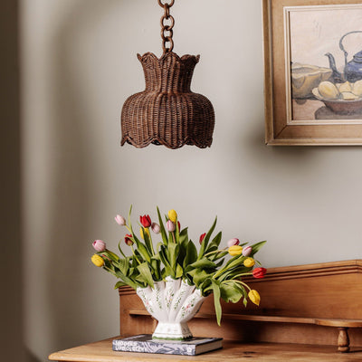 The Anar Rattan Pendant Shade is available in 3 sizes. The teak finish rattan colour fits in effortlessly with almost any style of decor and adds a vintage feel. It comes with a matching rattan chain for a cohesive look.