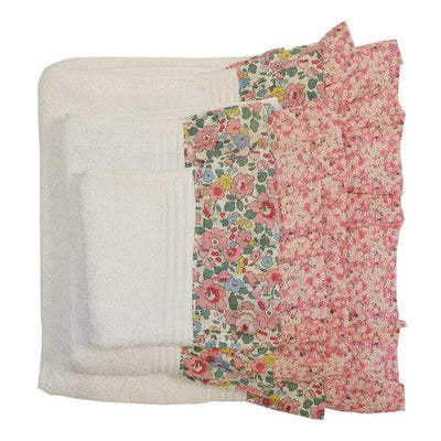 Coco & Wolf’s ruffle edge bath mat offers a playful and stylish update to this bathroom essential. This super absorbent, extra soft cotton towelling bath mat is hand-finished with a charming double ruffle edge in Liberty’s finest Tana Lawn™ cotton, featuring two complementary Liberty prints. Made from premium quality, anti-fungal ring spun cotton, each mat ensures durability and luxurious comfort while bringing a touch of beauty to your bathroom.