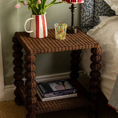 A simple side table reimagined with a woven bobbin twist. This rectangular side table can be used on the shorter or longer side, making it adaptable to spaces. We love it as a bedside table, next to a sofa or as a decorative table in a hallway. Designed by Hastshilp in the UK and ethically handcrafted in India by independent artisans.