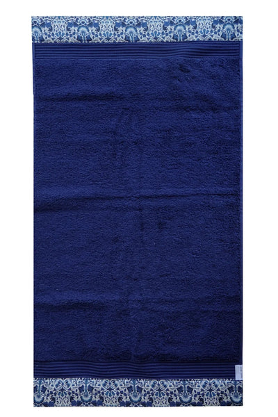 Border Edge Towel made with Liberty Fabric LODDEN NAVY