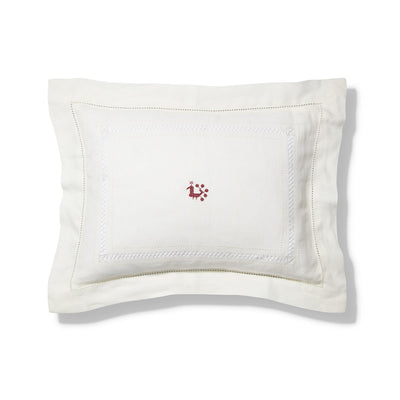 Boudoir pillow with a classic Oxford edge and embroidered by hand with frame of diamond & hemstitch drawn thread work. A perfect pillowcase for monogramming a name or initials.