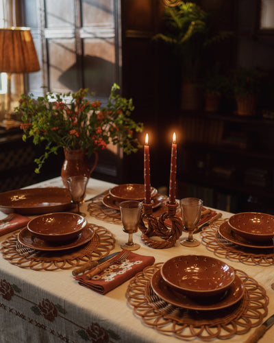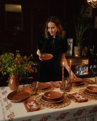 Rustic and full of charm, the Dotty collection is handmade in Southern Italy. Inspired by an antique terracotta fragment found by Louise on her travels, shop the full dinnerware collection from mugs and jugs to plates, bowls and platters.