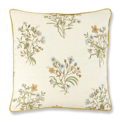Flax & Field Flower Cushion with Contrast Reverse and Ochre Trim
