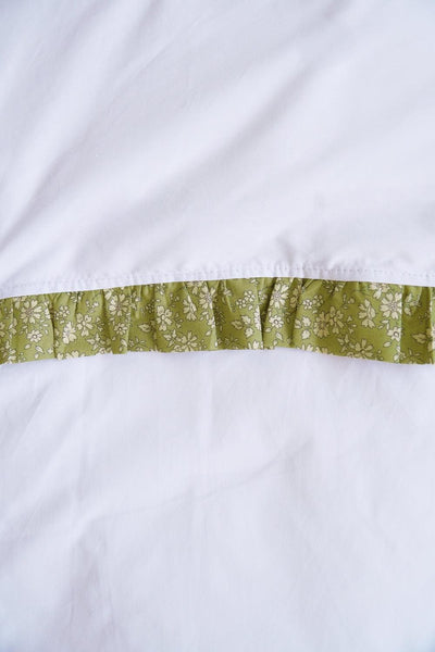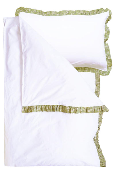 Frill-Edge White Duvet Set made with Liberty Fabric CAPEL PISTACHIO