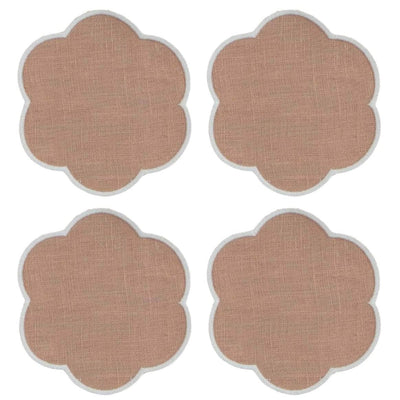The Blushed Pink and White Linen Scalloped Coasters (Set of 4)