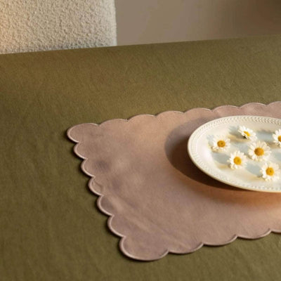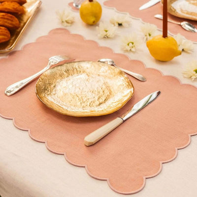 The Blushed Pink Linen Scalloped Rectangular Placemats (Set of 2)