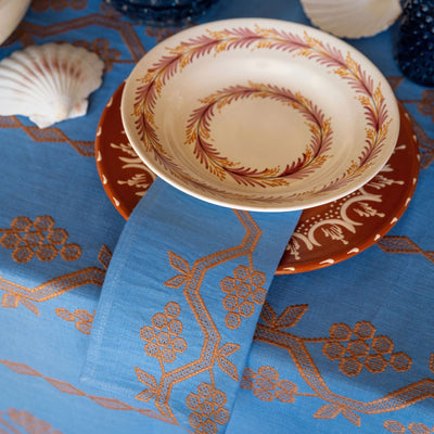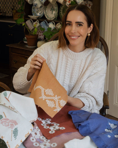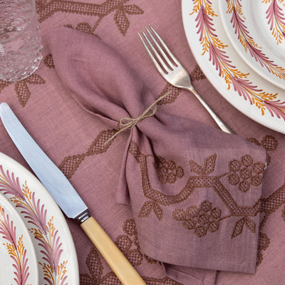 A set of four stunning hand-embroidered linen napkins, our Napa collection is the most elegant way to create an eye-catching tablescape. The napkins come in three colourways: cognac with white embroidery, pink with rich damask embroidery, and white with meadow green embroidery.
