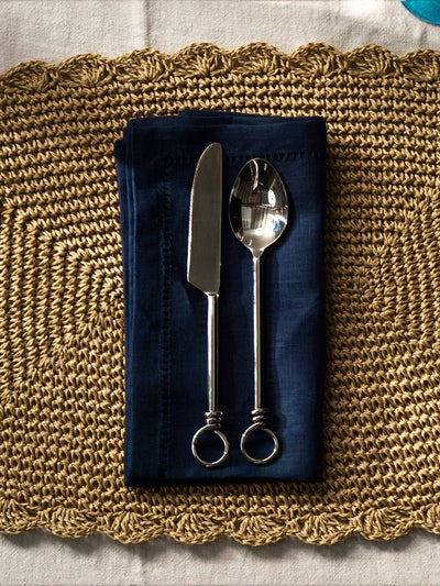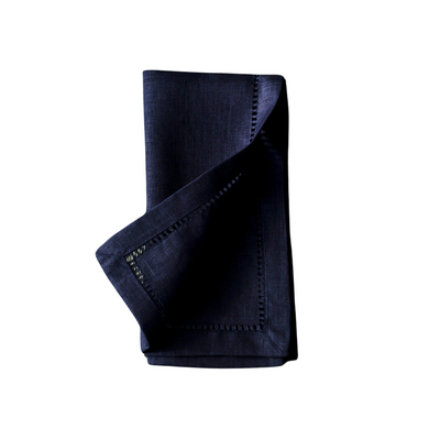 Pair of napkins made of linen with hemstitch edge in deep blue colour.