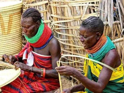 These laundry baskets have travelled from the shores of the Jade Sea on a bold journey of sustainable craft and ethical production. The Turkana region of Kenya – its largest county - is part of the famous ‘Cradle of Mankind’, where some of the earliest evidence of human evolution has been found. It’s also a part of Africa infamous for severe drought, which this landscape has suffered from since the eighties.