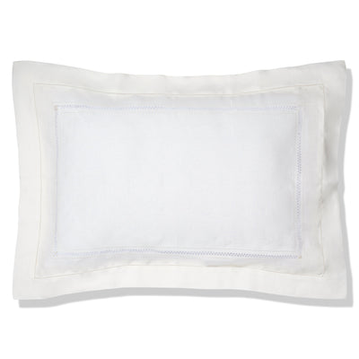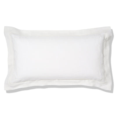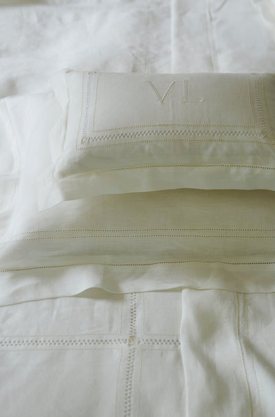 Volga’s most luxurious made-to-order pure linen range. The pillowcase has a classic Oxford edge and embroidered by hand with frame of diamond and hemstitch drawn thread work, adding an elegant touch to your bedding. This warm ivory white linen is made from 100% pure linen.