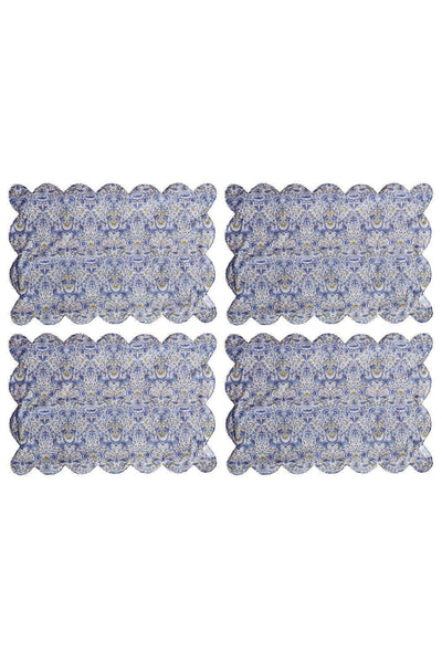 Reversible Scalloped Placemat Made With Liberty Fabric Lodden China Blue & Sambourne Yellow