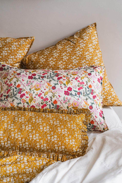 Brand new for Spring Summer, Coco & Wolf’s Bolster Lumbar cushions are designed to sit neatly in front of your bed pillows, offering the perfect finishing touch. Created using Liberty’s signature Tana Lawn™ cotton, these beautiful ruffle edge, extra wide cushions provide back support as you relax in bed and are suitable for all beds, from single to super king.
