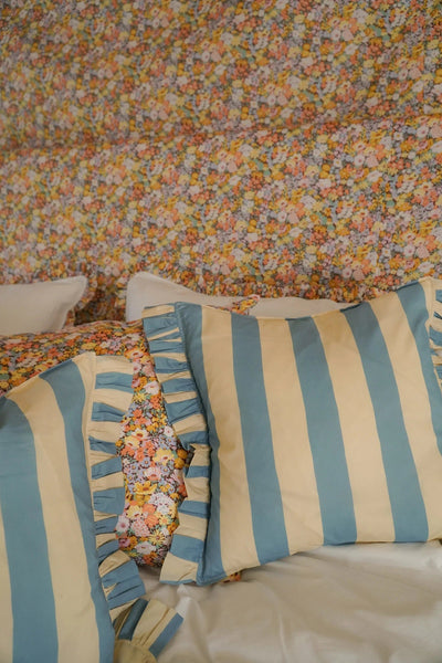 Ruffle Cushion made with Liberty Fabric VACATION STRIPE