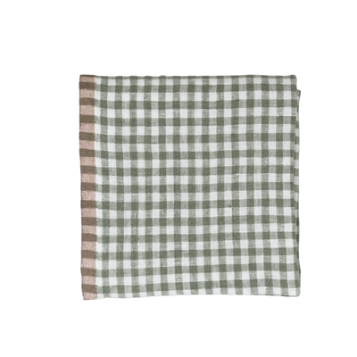Green Gingham Linen Kitchen Towels - Set of 2