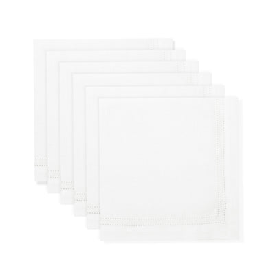 Elevate your dining experience with these Ivory White napkins featuring two rows of intricate hemstitch detailing, the perfect complement to any table setting. These napkins are crafted from the finest linen.