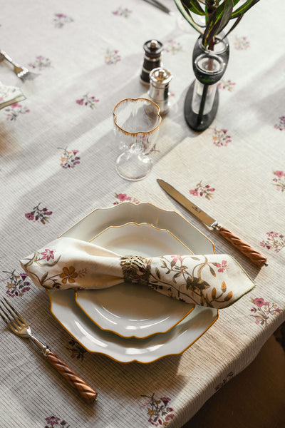 Elevate your dining experience with our Scarlet Flax & Field Flowers napkins. The signature Flax & Field design is now crafted in pure hemp — a first for the collection. Naturally sustainable, luxuriously soft, and durable, with the familiar texture of linen, this tablecloth brings understated elegance to any table setting.